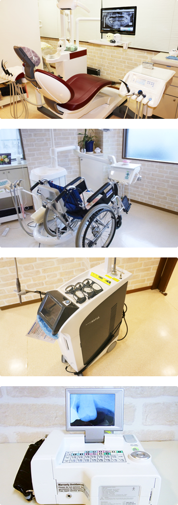 虫歯の治療を唯一薬事認可された、痛みが少なく安全性の高いレーザーを導入し,治療を行っています。歯科用レーザーは歯周病菌の殺菌力が強く、炎症や痛みをおさえ、早く治します。